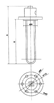 2、 图中尺寸”B”必须全部侵入油中(并定期检查)以免烧坏,被加热油应无腐蚀性气体。