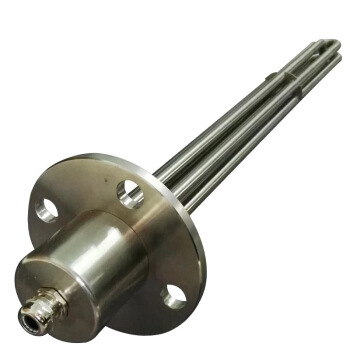 在固碱生产中的应用的电加热器是熔盐电加热器,根据工艺参数采用集束浸入式电加热器。集束浸入式电加热器是将加热介质输入加热腔( 容器内) ,通过加热器时采用流体热学原理,均匀地带走发热元件所发出的大量热量,使出口的介质温度达到所需的工艺要求,当介质温度达到设定值时,控制系统根据输出口的温度传感器信号,经PID 运算后自动调节电加热器输出功率,通过电加热器控制系统有效调节输出电压大小,对发热元件的电阻性负载实现温度控制。使输出口的介质温度均匀,达到所需要求。