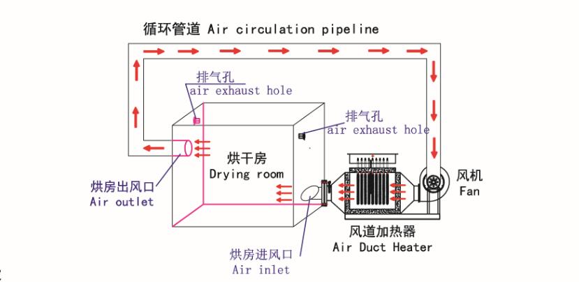 ,在结构上的共同之处是采用了用钢板支撑电热管以减少风机停止时电热管的振动,在接线盒中都装有超温控制装置。低温型可直接安装在风道上,而中温型、高温型由于结构上的不同,在通道外壁至加热器接线盒夹有100mm 厚的保温材料,一方面减少整个通道的对外散热,另一方面也减少了接线腔内的温度。